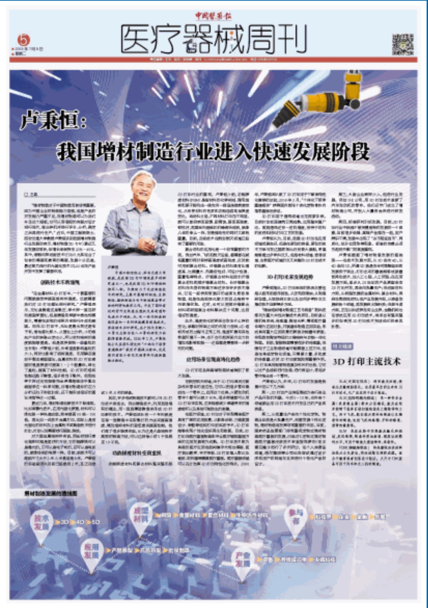 【中国医药报整版】卢秉恒:我国增材制造行业进入快速发展阶段2019-07-11
