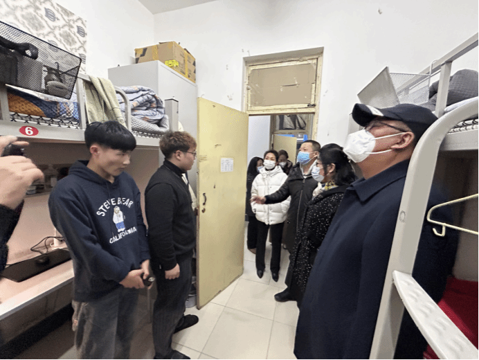 冰雪初融。春意萌动,新学期如约而至。在校党委和各大职能部门的共同努力下,同学们再次相聚在美丽的校园。2月26日晚,beat365正版唯一官网领导及全体辅导员深入寝室走访学生。党委书记张金辉、院长林庆华、党委副书记王钢、副院长王姗姗带领系主任伊善斌、安立勇、王静波,教工党支部书记杨菡、陈志南,深入学生宿舍,第一时间送去了学院的关怀。