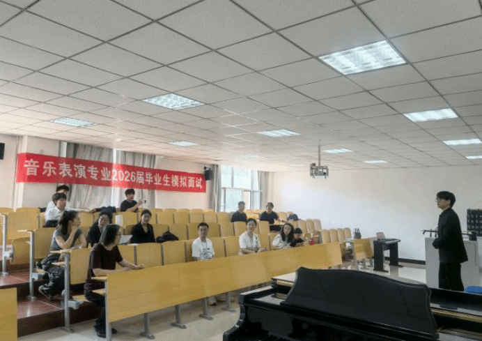7月10日,音乐系2026届毕业生模拟面试活动在音舞楼101、301、302三个场地举行,按学生就业意愿分为培训机构、中小学教师、专业乐团三个方向,覆盖音乐表演专业全体2026届毕业生。