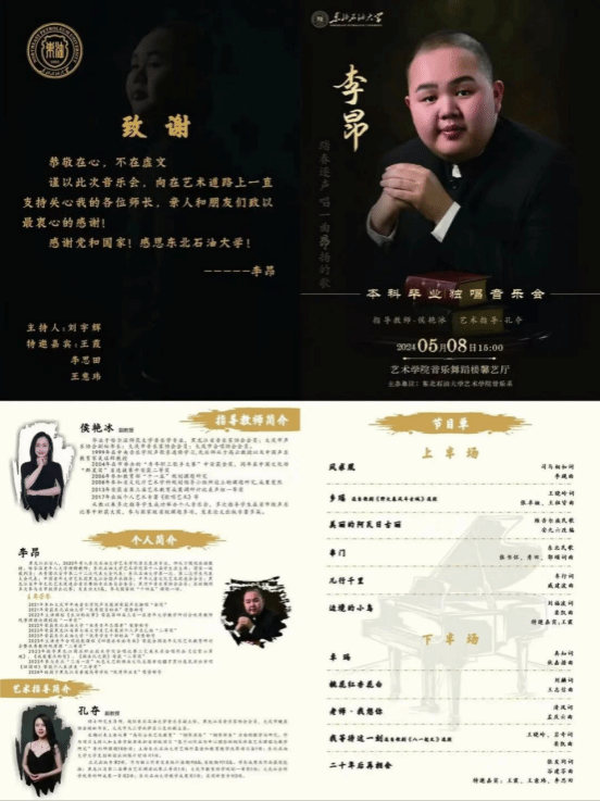 李昂在校期间曾经获得东北石油大学“优秀团员”、“优秀青年志愿者”和“优秀学生干部标兵”等称号,曾任beat365正版唯一官网第十八届学生会主席,是一位品学兼优的毕业生。音乐会的成功举办不仅展示了李昂本科四年的专业才能,也体现了beat365正版唯一官网在人才培养上的实践教学成果。