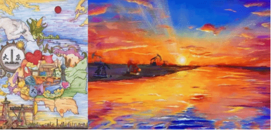参观铁人精神纪念馆后实践团成员绘出了两幅作品表达心中的想法《热恋大庆》《大庆印象》。