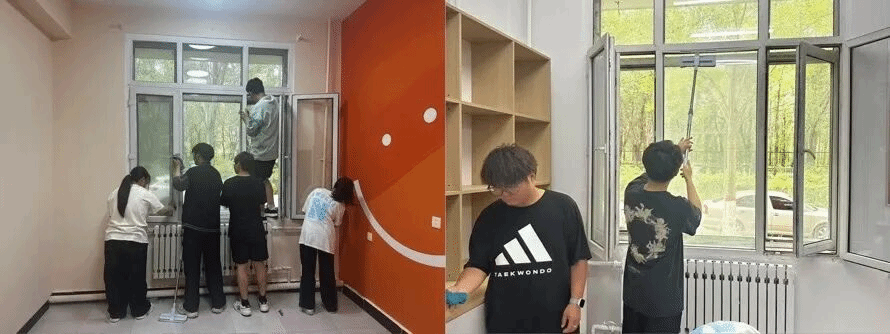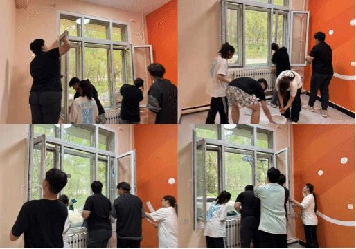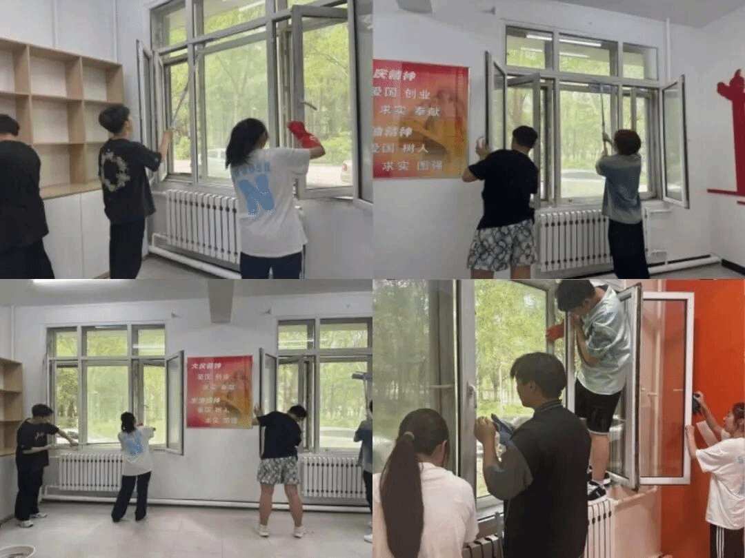 活动中,学生志愿者们以高度的责任感投身志愿劳动,手持扫帚与抹布细致清扫每一寸角落,反复擦拭窗户直至玻璃透光明亮。经过两小时持续作业,室内环境焕然一新,窗明几净的学习空间不仅为师生提供了舒适的工作环境,更让劳动精神在细节中得以彰显。