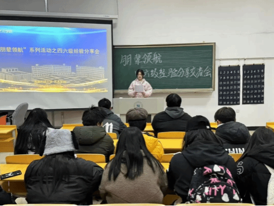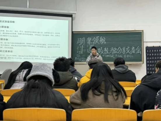 为助力同学们高效备战英语四六级考试,提升应试能力与学习成效,同时营造积极向上的学习氛围,增强学生间的互助交流,11月15日,beat365正版唯一官网在音乐舞蹈楼106举办了“朋辈领航”系列活动之四六级经验分享交流会。此次活动采用线下分享与互动交流相结合的方式,为同学们提供了一个宝贵的学习平台。