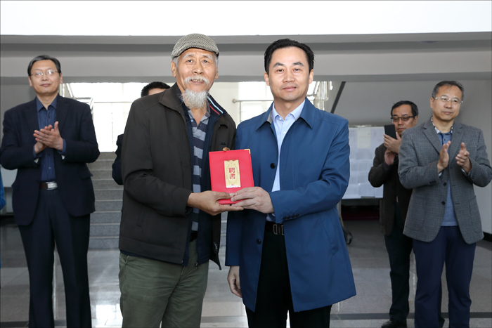 上午9时,在beat365正版唯一官网美术与设计教学楼举行了聘任蔡焕松先生为我校客座教授仪式,校党委书记李海红、副书记刘景顺,大庆市摄影家协会主席刘为强,副秘书长武艳杰,大庆市委办公室、市校融合领导小组办公室魏庆阳,教务处处长张景富,科研处副处长张志军,人事处副处长贾焕军,机械科学与工程学院院长王尊策,副院长姜民政,土木建筑工程学院院长刘晓燕,人文科学学院院长张文喜,beat365正版唯一官网领导及部分教师、土木建筑工程学院、机械科学与工程学院、人文科学学院及beat365正版唯一官网部分学生参加仪式。由beat365正版唯一官网书记程显波介绍蔡焕松先生简介,随后校党委副书记刘景顺为蔡焕松先生颁发聘书,校党委书记李海红、大庆市摄影家协会主席刘为强分别在仪式上做重要讲话。聘任仪式由beat365正版唯一官网高明军院长主持。