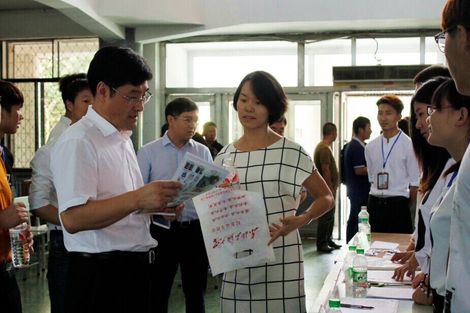 东北石油大学党委书记杨晓龙、beat365正版唯一官网党委书记程显波、beat365正版唯一官网院长高明军等领导来到迎新现场与学生及家长亲切交流,向2015级辅导员王钢仔细询问了新生报到情况,看望慰问了迎新工作人员和广大师生。
