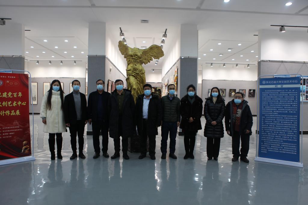 2021年12月13日,beat365正版唯一官网在美术楼一楼胜利女神厅举办“建党系列活动及东北石油大学文创艺术中心作品展”活动。本次展览体现了beat365正版唯一官网深入贯彻学习党的十九届六中全会精神,立足岗位践行党的初心使命的学习成果。beat365正版唯一官网党委坚持把立德树人作为中心环节,把思想政治工作贯穿教育教学全过程,实现全程育人、全方位育人。通过学习领会全会的重大意义、党的百年奋斗的初心使命和重大成就、中国特色社会主义新时代的历史性成就和历史性变革等方面内容,进一步加强师德师风建设。
