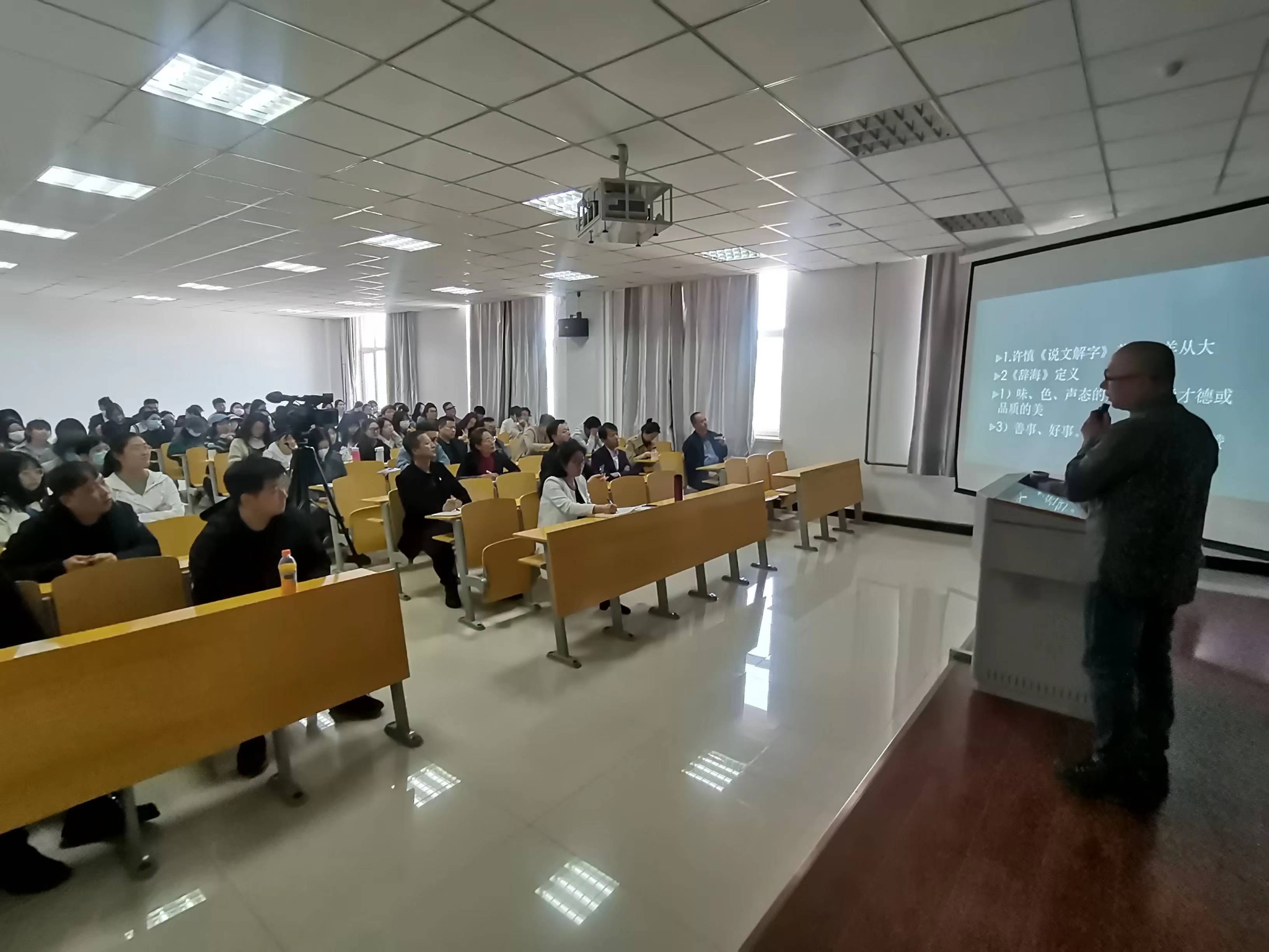 2023年5月10日下午1点30分,由beat365正版唯一官网组织的美育讲堂正式开讲,讲座题目是“美育一二三------中央美术学院美育高研班学习分享会”。主讲人是美育中心李宝伟副主任。林庆华院长主持会议,beat365正版唯一官网全体师生参加讲座。