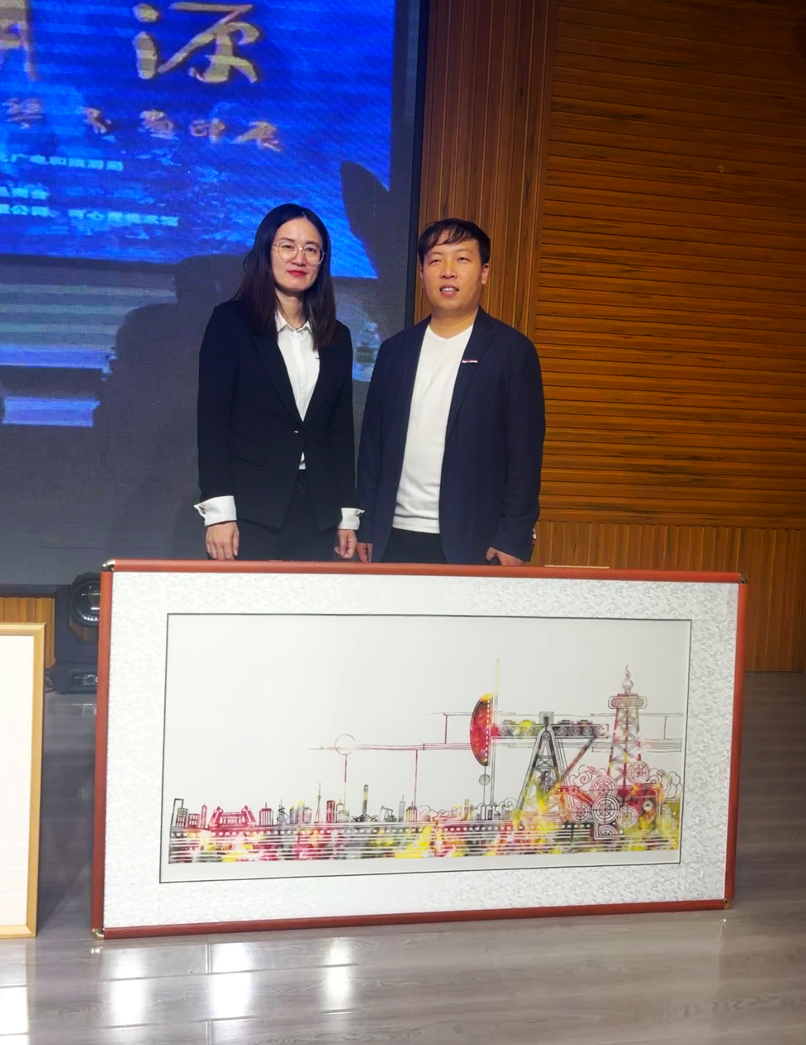 会后,时任伊春市丰林县副县长鄢杰明与beat365官网教师付建鑫进行详细交流,对“大庆精神”主题非遗文化剪纸表现出高度关注并合影留念。她充分肯定了付建鑫老师所展示的剪纸作品,并对这一融合传统与现代的文化表达给予了高度评价。副县长鄢杰明表示,非遗文化的传承是保护地方文化的重要途径,而“大庆精神”则是地方文化的一张名片,通过非遗文化剪纸的传承,能更好地展现地方文化的独特魅力。