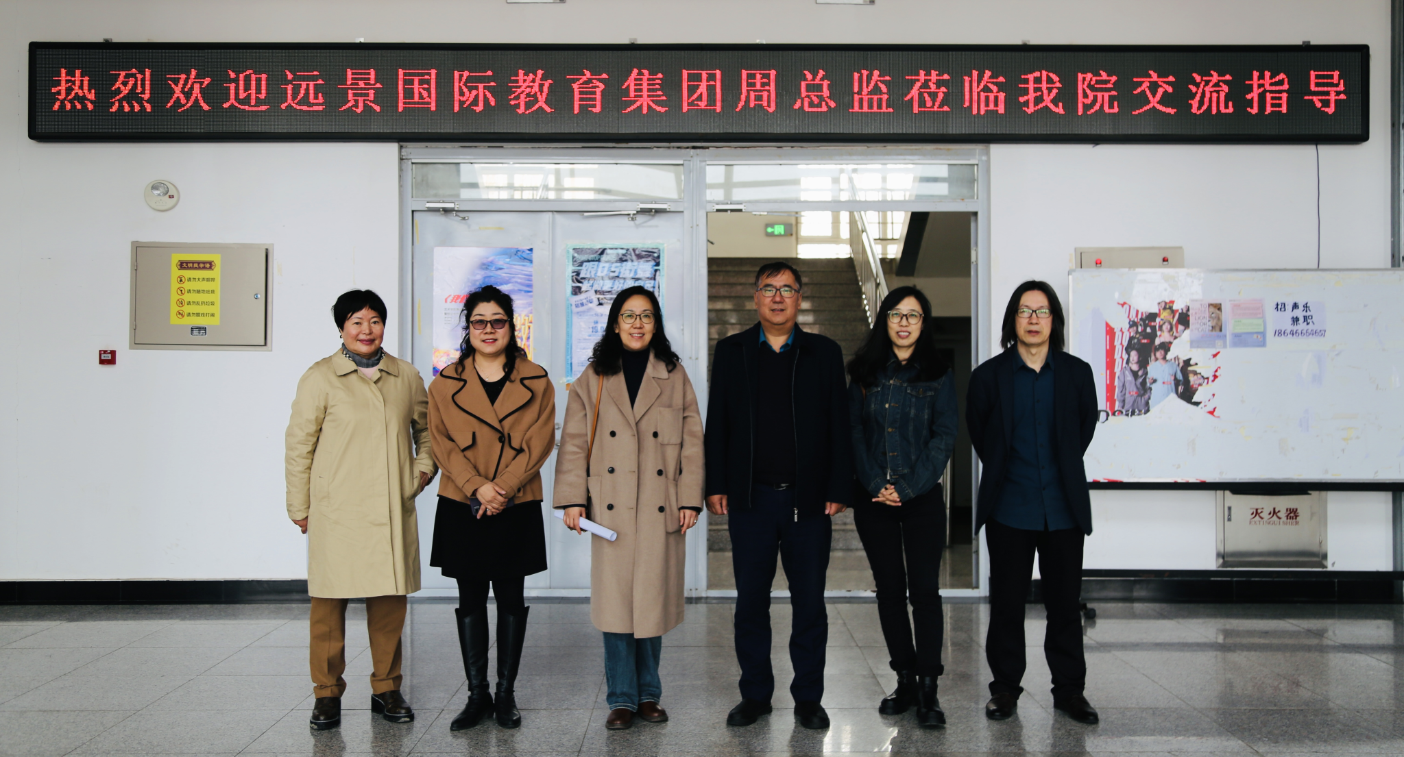 4月16日上午,远景国际教育集团总监周班竹、郭淑媛一行2人来beat365官网交流访问。访问期间,周总监和郭总监参观了馨艺厅、多媒体教室、民族管弦乐团排练厅、录音室等,beat365正版唯一官网党委书记张金辉、院长林庆华、教学副院长王靖一陪同。