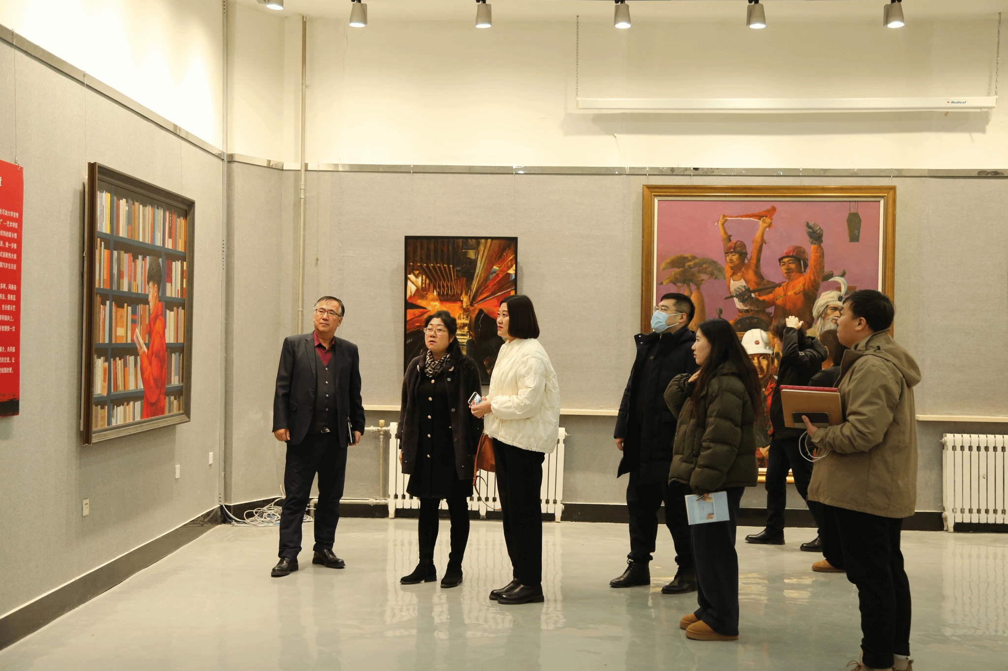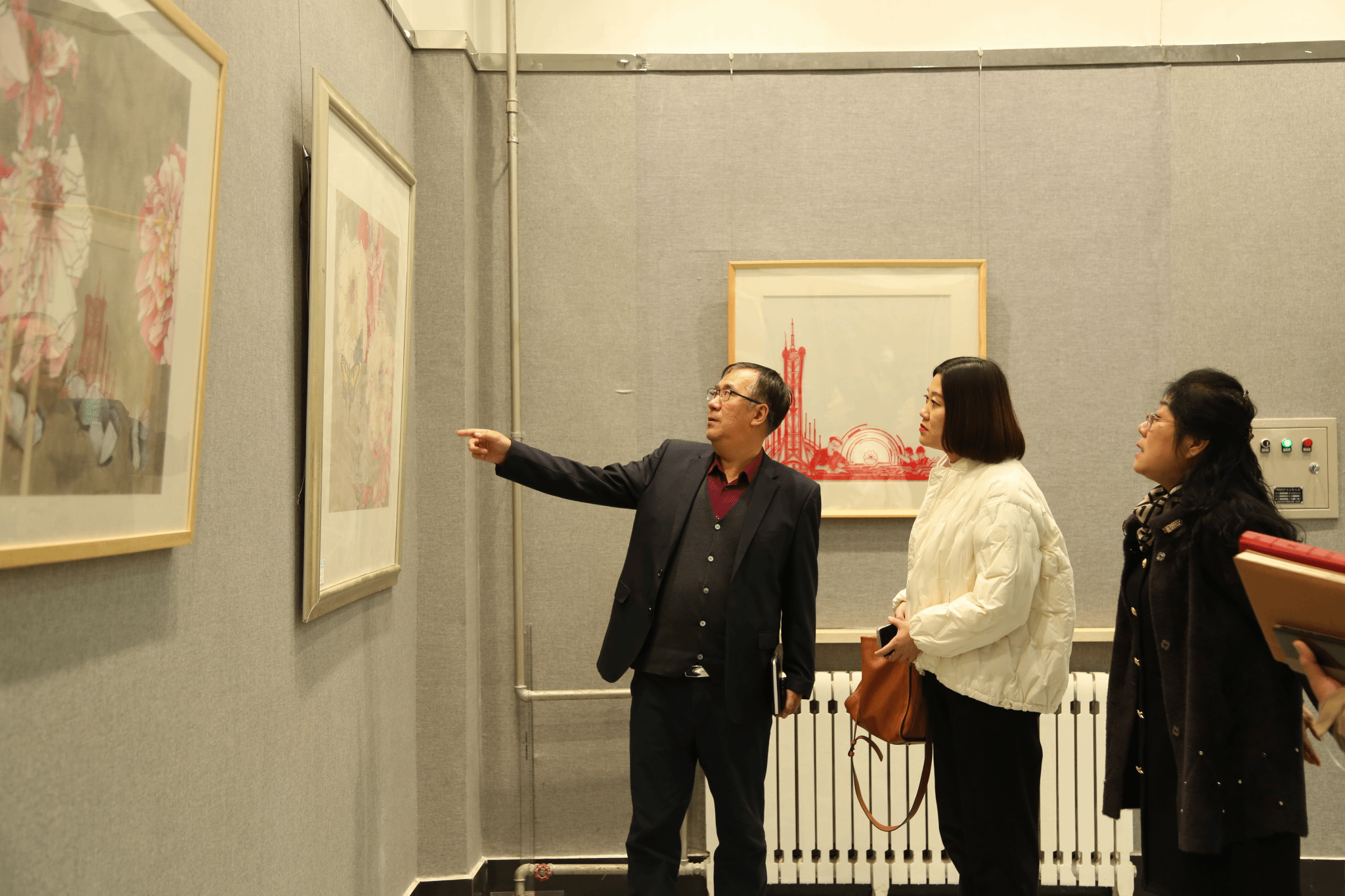 会后,学院领导陪同刘佳丽书记参观了beat365官网的展出的版画、芦苇丝画、衍纸、剪纸、油画等艺术作品。