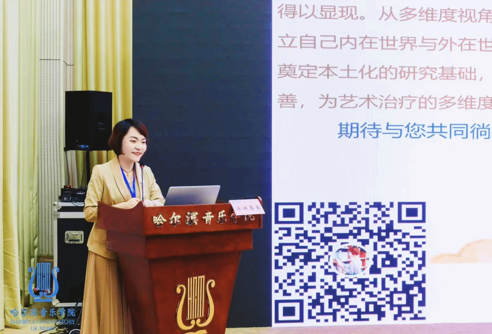2024年11月23日beat365正版唯一官网闫红副教授受邀参加在哈尔滨音乐学院举办的—中国哈尔滨·首届“艺术与科学”学术前沿问题国际论坛,并在专题论坛中作《艺境聆心—整合艺术疗愈在不同群体中的多维度探索及实践应用》主题发言。