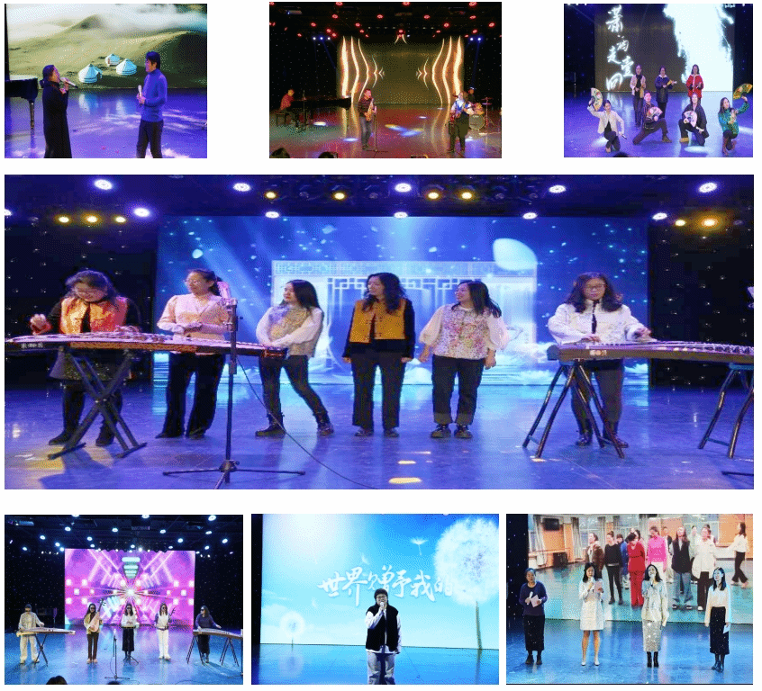 舞台光影流转,由学院党委书记张金辉、副书记张丽坤领舞,音乐与美术系老师们以灵动舞步演绎了90年代舞蹈,诙谐表演中透射着时代印记;舞蹈系老师们激情演唱经典歌曲《潇洒走一回》,刚柔并济引得满堂喝彩。院长林庆华、副院长王靖一带领钢琴教师匠心独运,以古筝串烧掀起跨界风潮;民乐教师将民族乐器与流行音乐相结合,此刻的舞台已化作跨越甲子的时光长卷。