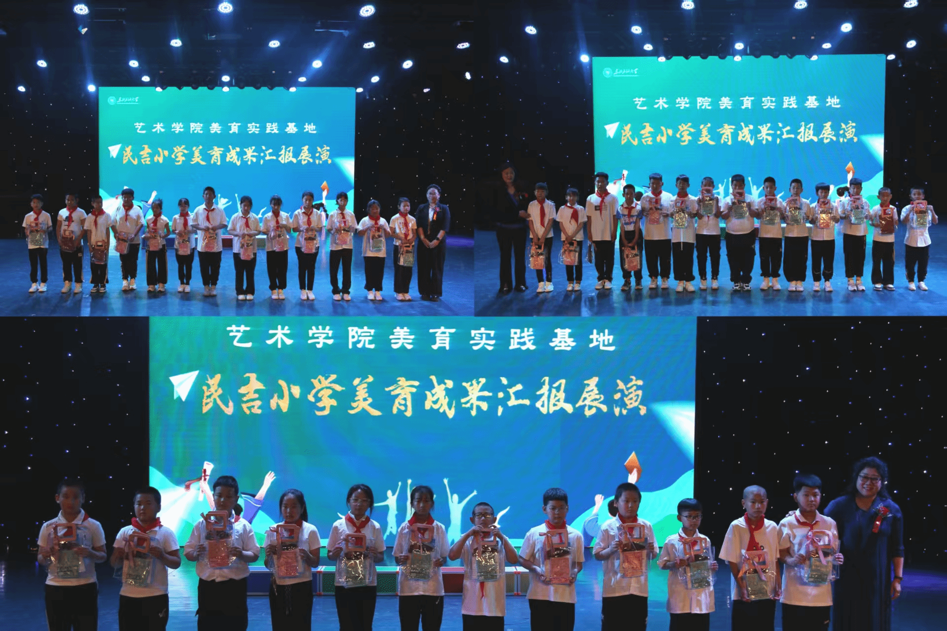 上午10时30分,一场双向奔赴的美育展演在音舞楼馨艺厅拉开帷幕。民吉小学的孩子们表演了三个精彩节目:竖笛合奏《义勇军进行曲》奏响爱国情怀,民族舞蹈《苹果香》展现乡土童趣,小合唱《世界赠予我的》唱响成长梦想。这些由beat365正版唯一官网老师和民吉小学师生共同打磨的节目,生动诠释了美育浸润下的童心绽放。