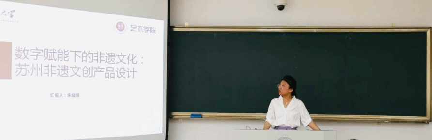 “数字赋能下的非遗文化:苏州非遗文创产品设计”朱晓雅老师以此为题剖析非遗文化在数字赋能下的创新发展模式,指出多元化+数字化+产品化是非遗资源转化的必然路径。她重点分享苏州非遗文创产品设计,以苏州园林文创设计、御窑金砖设计等成功实践案例,剖析非遗技艺与现代产品设计的结合点,以及非遗在时尚、教育、文旅等领域的应用潜力。
