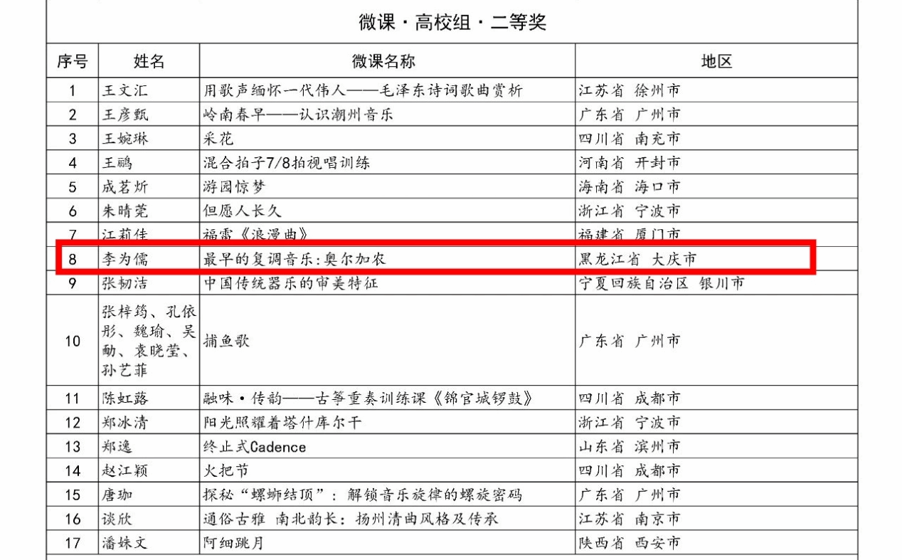 2025 “万叶杯”音乐微课与课件征集活动结果揭晓,beat365正版唯一官网音乐系李为儒老师的微课作品《最早的复调音乐:奥尔加农》,凭借专业特色鲜明、设计创新、技术精湛,在众多作品中脱颖而出,荣获微课高校组二等奖,彰显beat365官网教师在音乐教育信息化领域的实力。