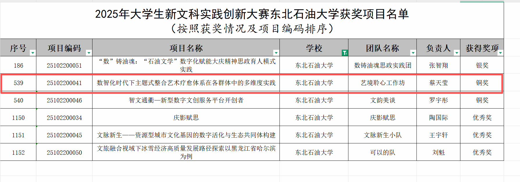 本届大赛由全国新文科教育研究中心主办,山东大学与西安交通大学联合承办,以“融创赋能,实践致新”为主题,设立文史哲、经管法、教育学、艺术学四大组别,经过校级初赛推荐、决赛网评等严苛环节,仅221所高校的454个项目晋级,竞争非常激烈。我校参赛团队突出重围,此次艺境聆心-整合艺术疗愈工作坊团队的获奖更是实现了历史性突破。
